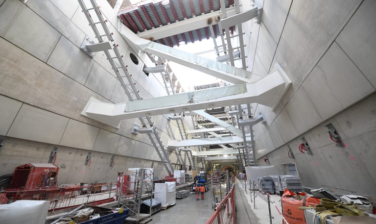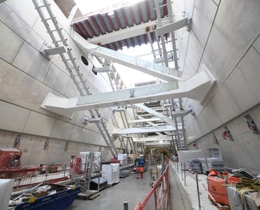 Soutien au service Méthodes du groupement Eiffage, Bouygues et Razel-Bec sur la gare Porte Maillot du RER E : modélisation Revit et élaboration de phasages chantier pour les travaux souterrains.